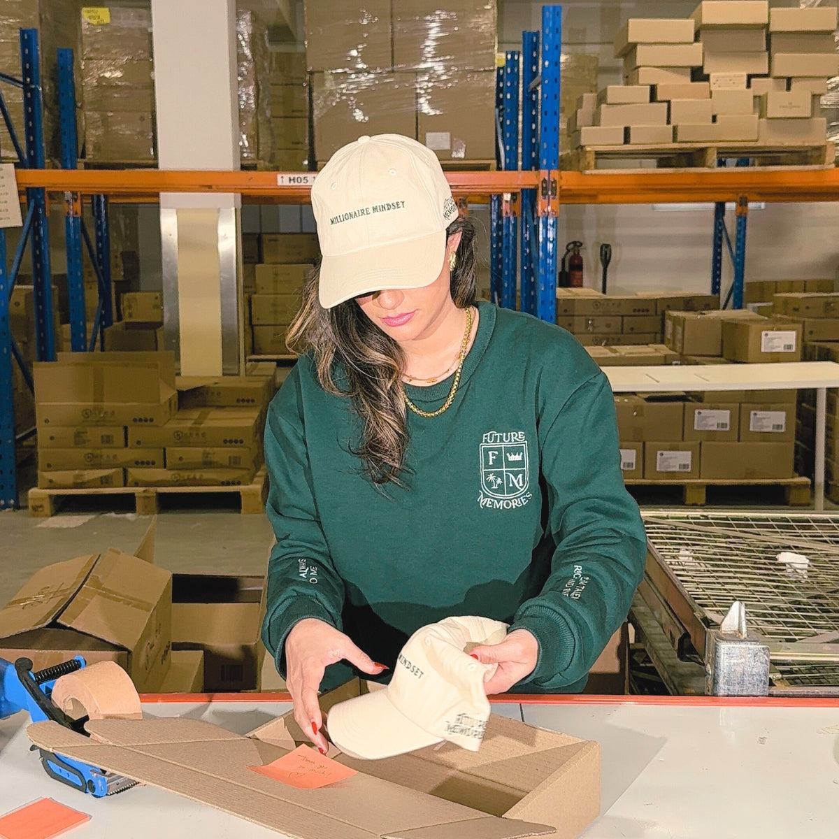Pack your orders, create your content, write your emails and feel wildly successful in this bougie but verrry cosy sweater. Each sweater is embroidered with the Future Memories logo on the front.